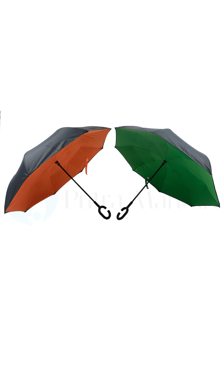 Teknologi payung terbalik modern yang membuat air tidak menetes saat payung ditutup.